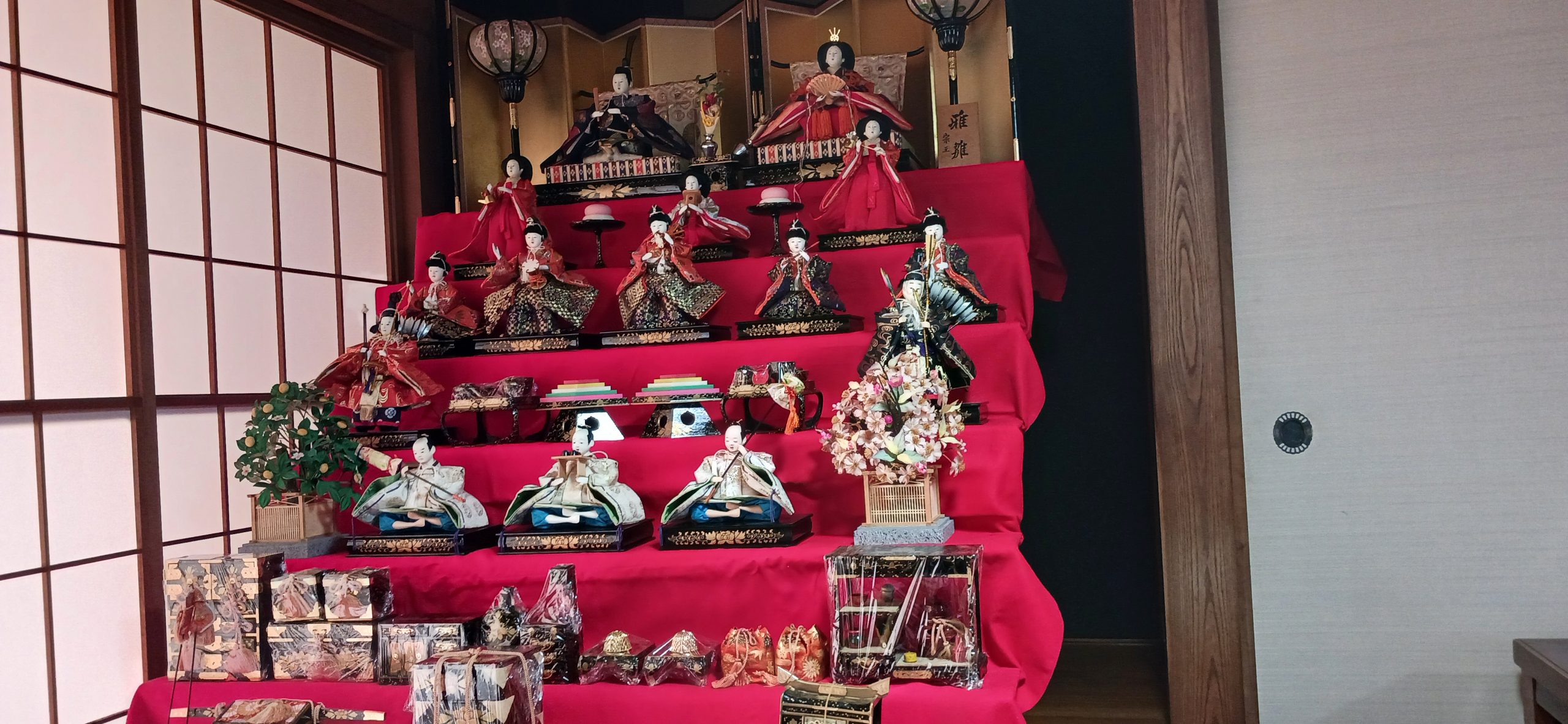 店内奥座敷にお雛様を飾りました。お子様に大変人気のスポットです。